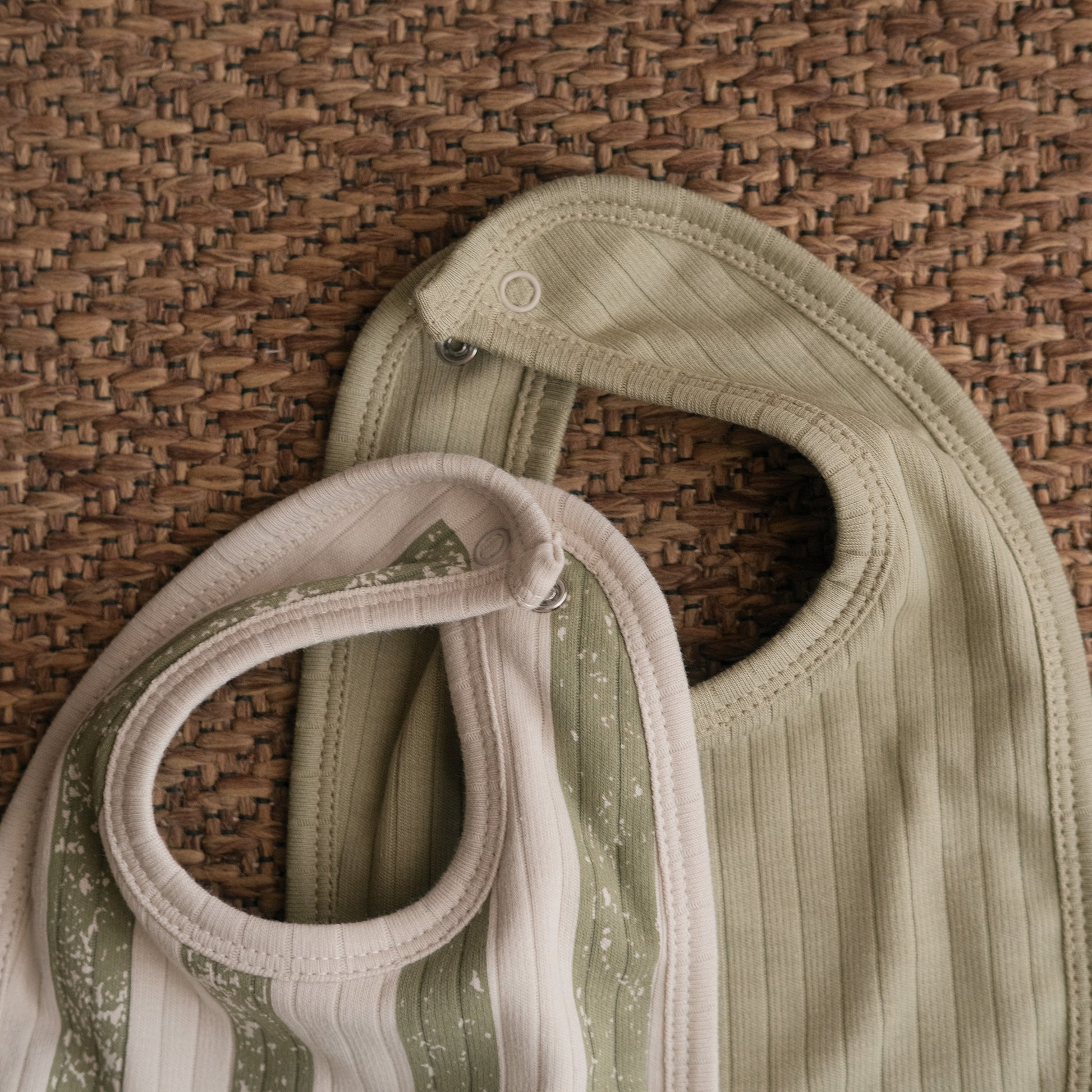A set of 2 plush, padded ribbed bibs made from 100% organic Egyptian cotton.