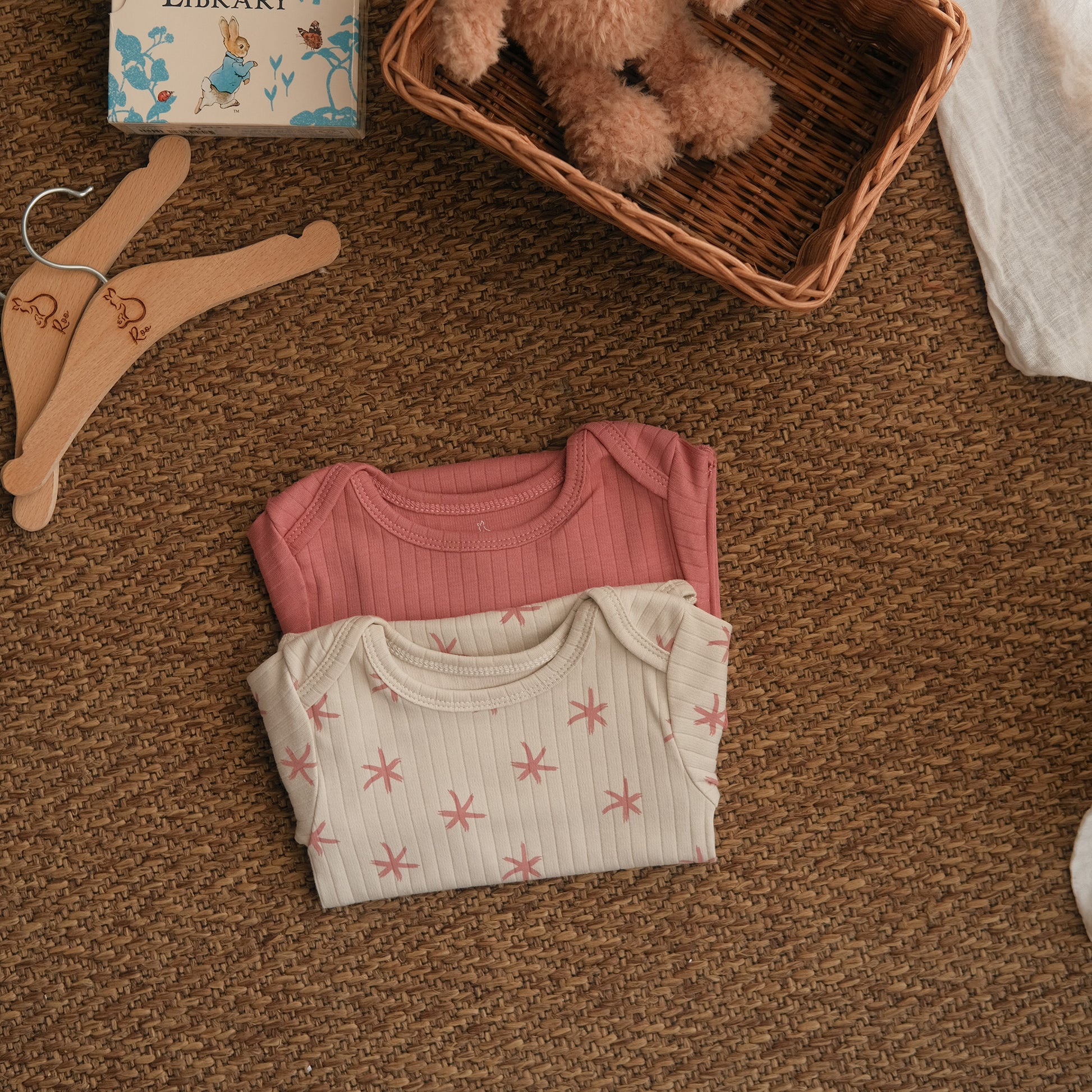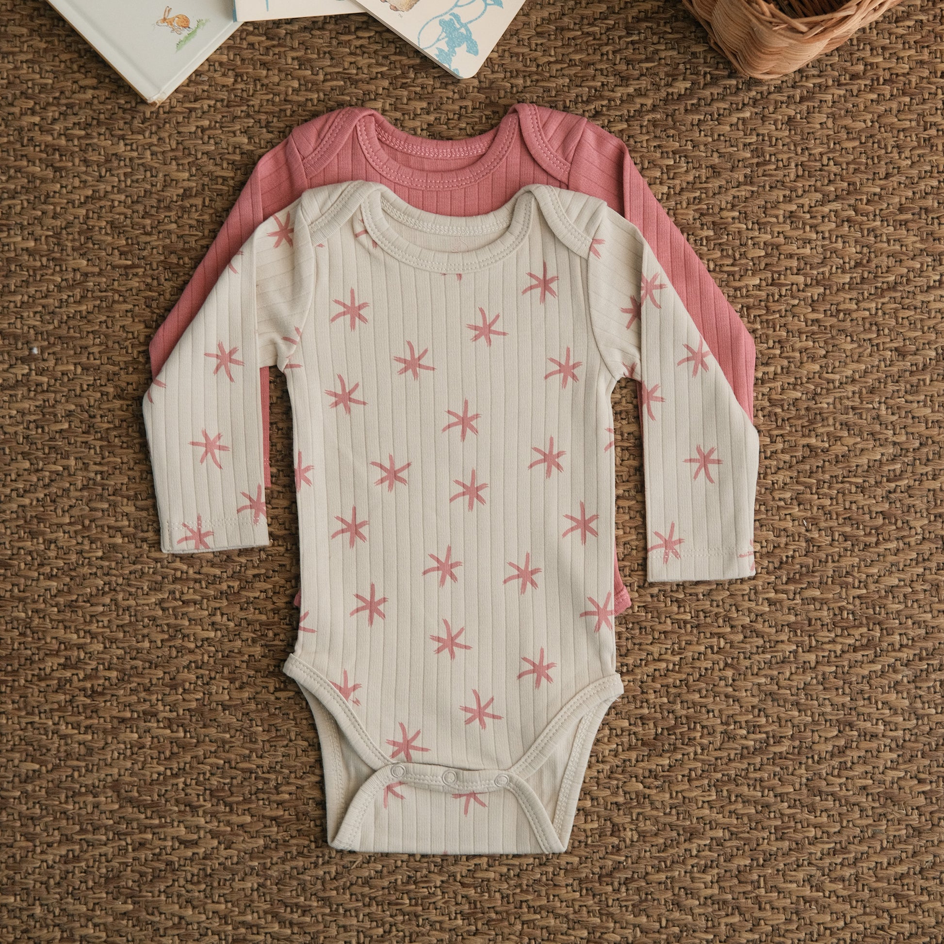 A set of 2 ribbed bodysuits crafted from 100% organic Egyptian cotton.